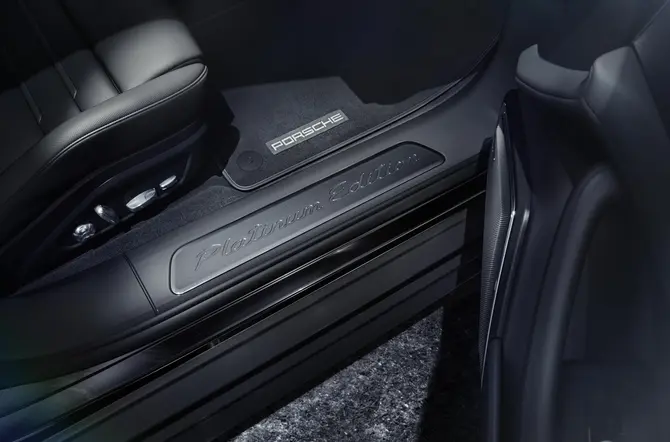Binnenin gaat de verfijnde luxe verder. Tot de standaarduitrusting behoren bijvoorbeeld het GT-sportstuur en Stuurbekrachtiging Plus, de rijstrookwisselassistent, softclose portieren met comforttoegang, 14-voudig verstelbare comfortstoelen vóór met geheugenpakket, stoelverwarming voor de achterpassagiers, een BOSE® Surround Sound System, het interieurpakket met zwart geborsteld aluminium en het Porsche-logo op de hoofdsteunen. Exclusief voorbehouden aan de Platinum Editions zijn de dorpellijsten van zwart geborsteld aluminium die voorin het opschrift 'Platinum Edition' dragen. Daarnaast worden alle modellen van de Platinum Edition standaard geleverd met een analoge klok in het bedieningspaneel.